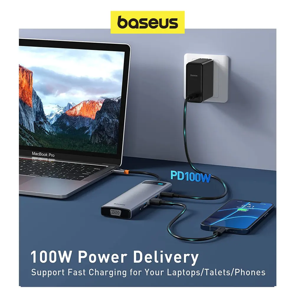 ✅ Adaptador BASEUS USB-C HUB 11 en 1 ✅ 2x HDMI + 3X USB 3.0 + 1X VGA + 1X RJ45 + 1X SD Slot + 1X TF Slot + 1X 100W PD + 1x Puerto Jack de 3,5 mm ✅ Puerto PD: 5V / 9V / 145V / 20V5A (Max ) ✅ Puerto SD / TF: admite 480Mbp/s (Máx.) ✅ Puerto de red RJ45: admite 10 Mbps, 100 Mbps, 1000 Mbps ✅ Corriente en espera: <400mA, Voltaje: 5 V-20 V ✅ Puerto jack de audio de 3,5 mm: el puerto jack 2 en 1 está diseñado para auriculares y micrófono. ✅ USB 3.0: admite 5 Gbps y es compatible con versiones anteriores de USB 2.0 ✅ Sistema de soporte: para Google Chrome OS, para Apple Os, para Windows XP / 7/8/10, para Linux, para Vista ✅ 4KHD: admite pantalla HD 4K a 30Hz (máx.)- Nota: la interfaz 4K HD marcada anteriormente es la interfaz compatible con HDMl, puede enviar señales de audio y video sin comprimir. la resolución cambia a 1080P@60Hz Por VGA