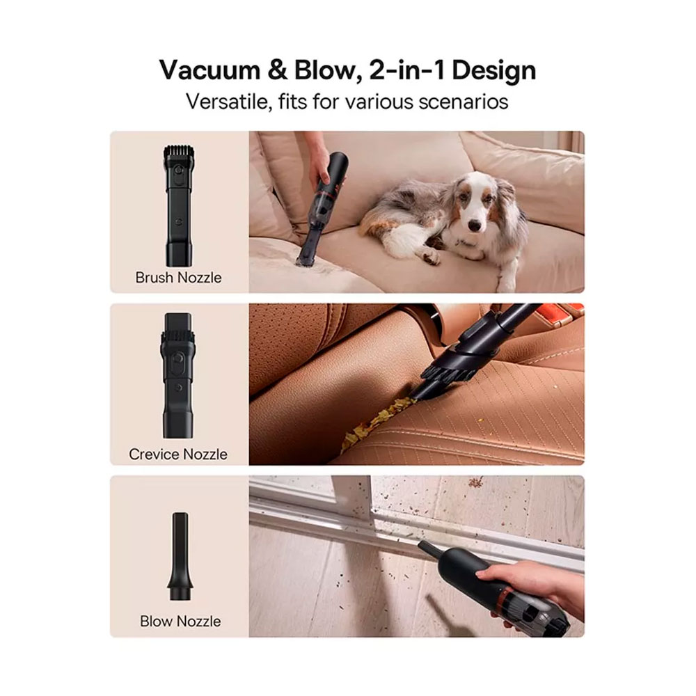 * Aspirador de Baseus A2 Pro de larga duración con batería de alta fuerza de succión * Portátil e inalámbrico: el diseño compacto e inalámbrico de la aspiradora de mano brinda mayor movilidad y conveniencia, y es fácil de transportar y almacenar * La Fuerza de succión de 7000PA permite eliminar el cabello, el polvo y los residuos a fondo * Contenedor de polvo de gran capacidad de 120ml es facil de ensamblar y desmontar * El filtro HEPA elimina hasta el 99,7 % de los contaminantes y evita la recontaminación del aire. * Cuenta con un indicador de batería que permite saber cuándo necesita recargar * Ideal para uso domestico, oficina y automovil * Diseño elegante y compacto, con motor interior de alta eficiencia y la carcasa de metal mejoran completamente la aspiradora de mano tradicional