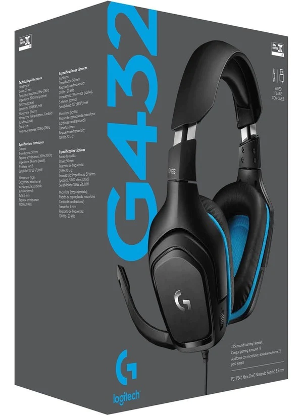 Los auriculares gaming Logitech G432 cuentan con grandes transductores de 50 mm que proporcionan un sonido completamente envolvente para una experiencia de juego más inmersiva. Estos auriculares son ideales para usar con PC, Mac y consolas de videojuegos como PlayStation 4™, Xbox One™, Nintendo Switch™ y dispositivos móviles gracias a su conexión por cable de 3,5 mm. El micrófono de 6 mm asegura que tus compañeros de juego te escuchen claramente. Las almohadillas que giran 90° y la diadema de piel sintética reducen la presión sobre las orejas para mayor comodidad.