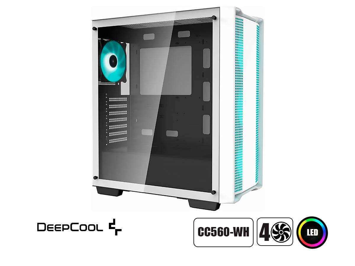 La caja DeepCool CC560 WH Mid-Tower ofrece un valor excepcional con una amplia compatibilidad de componentes, una ventana de cristal templado de tamaño completo y un total de cuatro ventiladores LED preinstalados que hacen que cualquier construcción comience correctamente.
