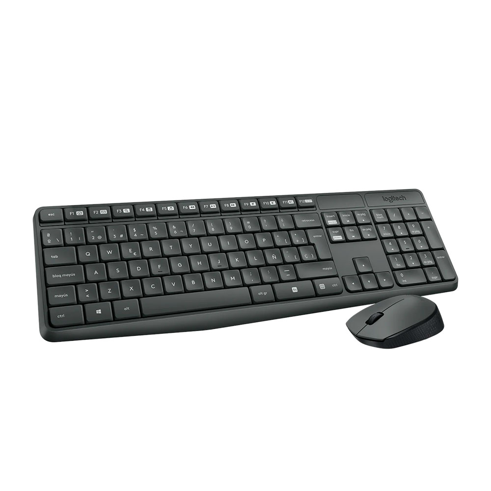 Resistente. Sencillo. Sin cables. El Combo de Teclado y Mouse Inalámbricos MK235 de Logitech te ofrece la comodidad y simplicidad de un teclado de tamaño completo junto con un mouse inalámbrico confiable. Puedes escribir en el teclado durante 3 años sin cambiar las baterías y usar el mouse durante hasta 1 año antes de necesitar nuevas baterías. Diseñado para durar, el teclado inalámbrico USB tiene patas ajustables y teclas resistentes. Solo conecta el receptor USB compacto y disfruta de una conexión fuerte y sin retrasos. Utiliza este conjunto de teclado y mouse portátil con tu laptop o PC, donde sea que trabajes.